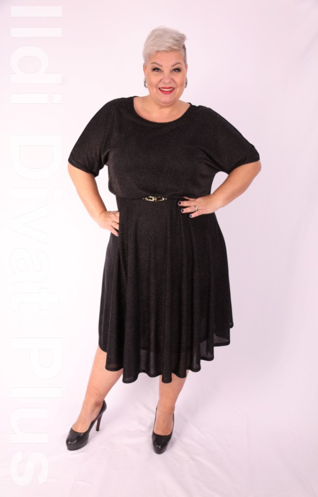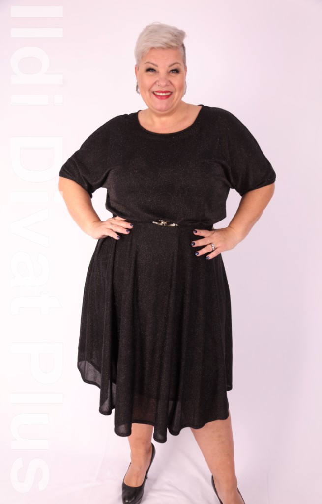 Trynite fekete anyagában mintás csillogós derekán szabott A vonalú ruha.