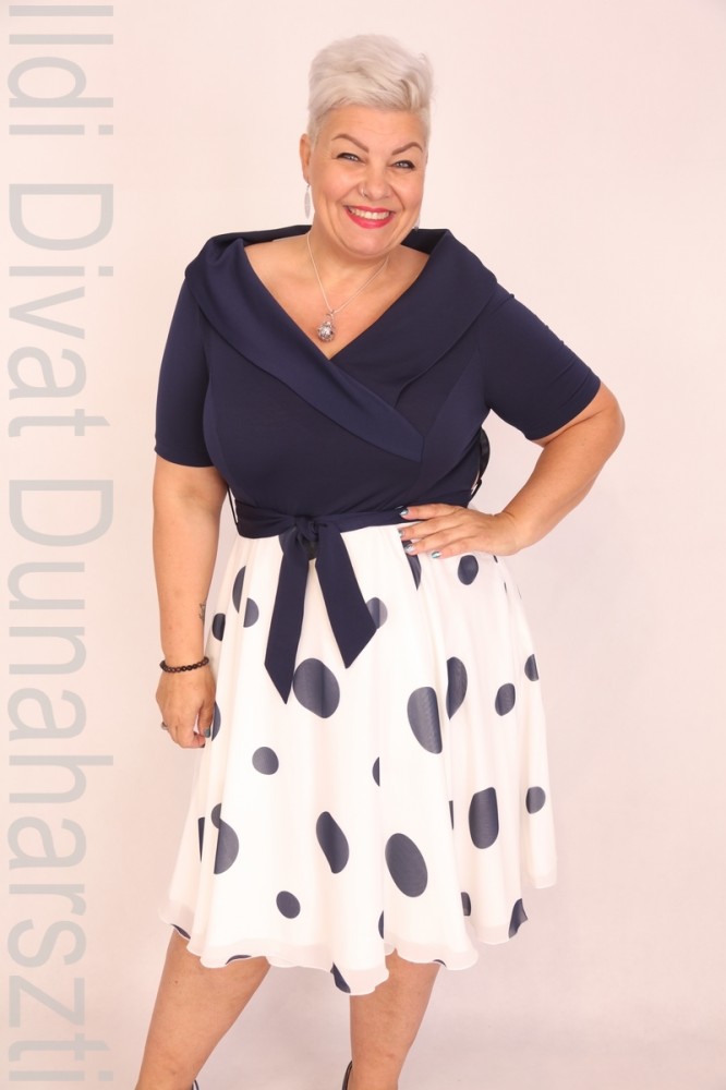 Elli Kék-Fehér Pöttyös Ruha