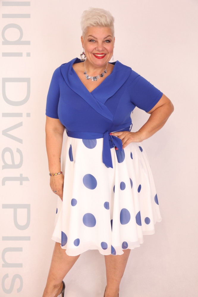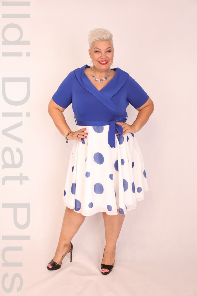 Elli Királykék-Fehér Pöttyös A-vonalú Ruha