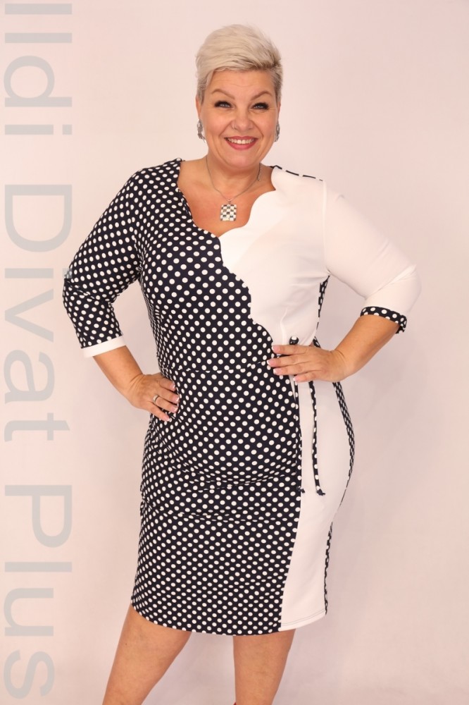 Crafty Clothes Kék-Fehér Pöttyös Kötős Ruha