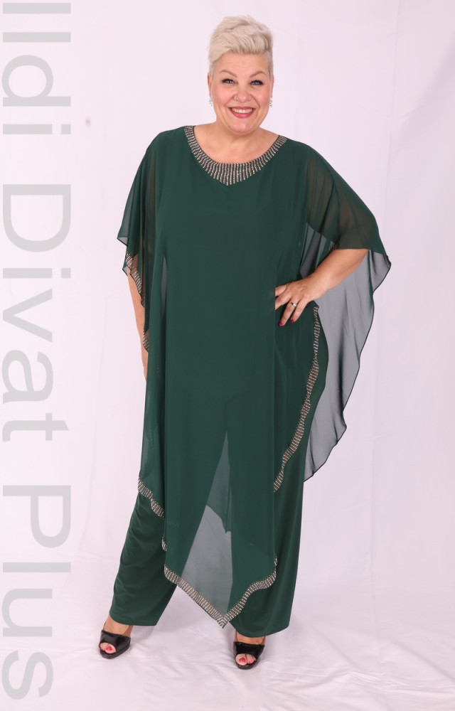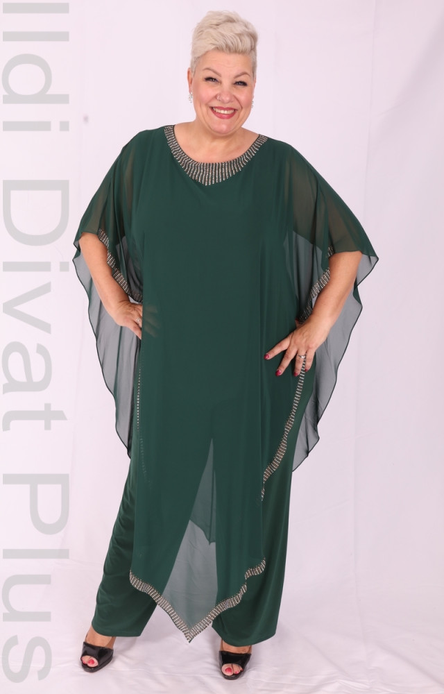 Smaragd-zöld nyakán alján köves muszlinos overál.