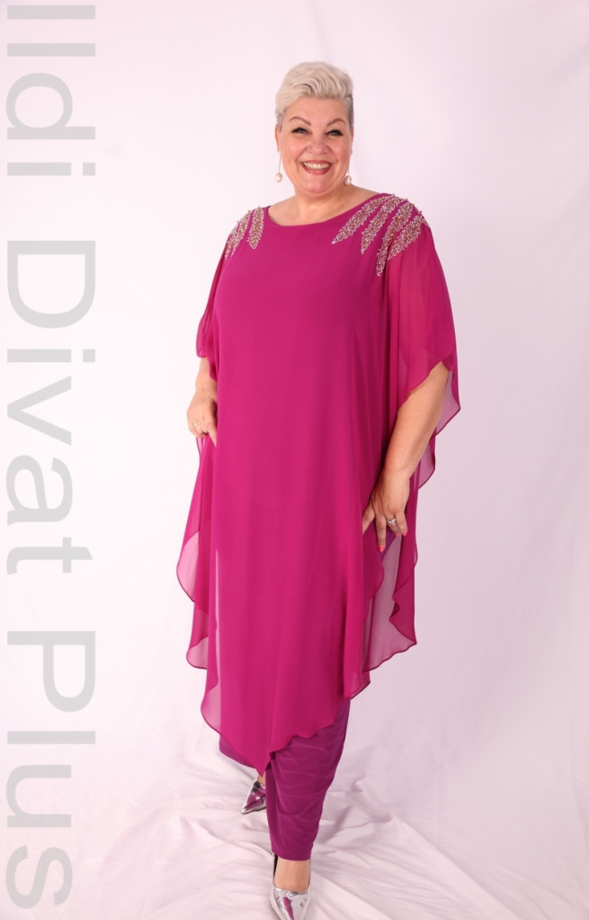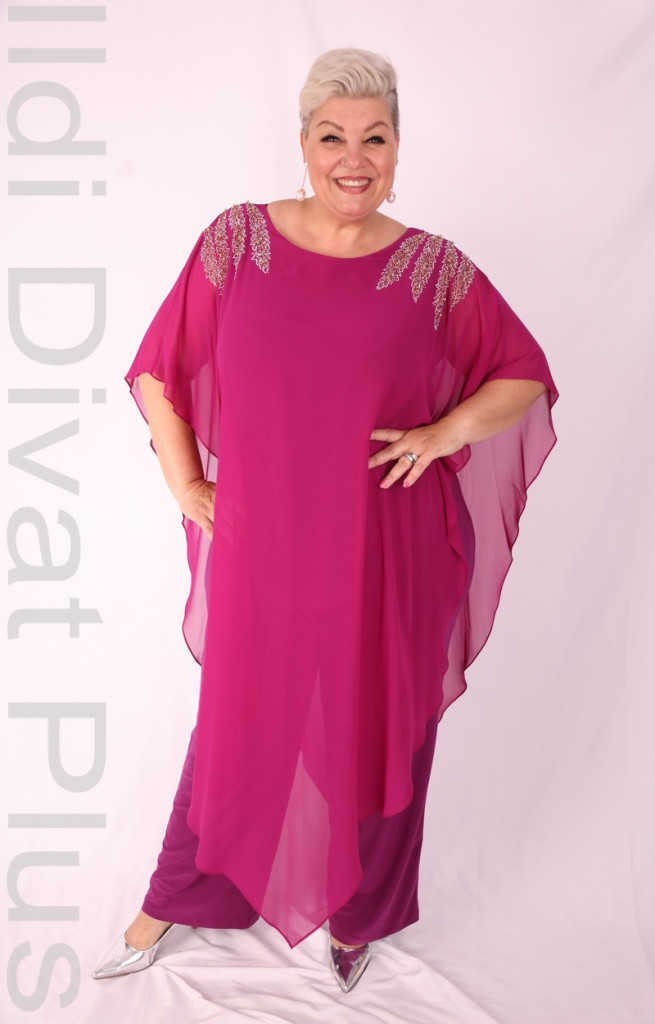 Hesba lila vállán köves muszlin rátétes alkalmi overál.