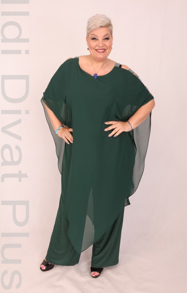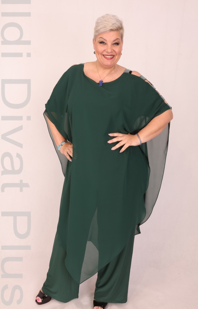 Smaragdzöld színű, vállán köves, muszlin alkalmi overál.