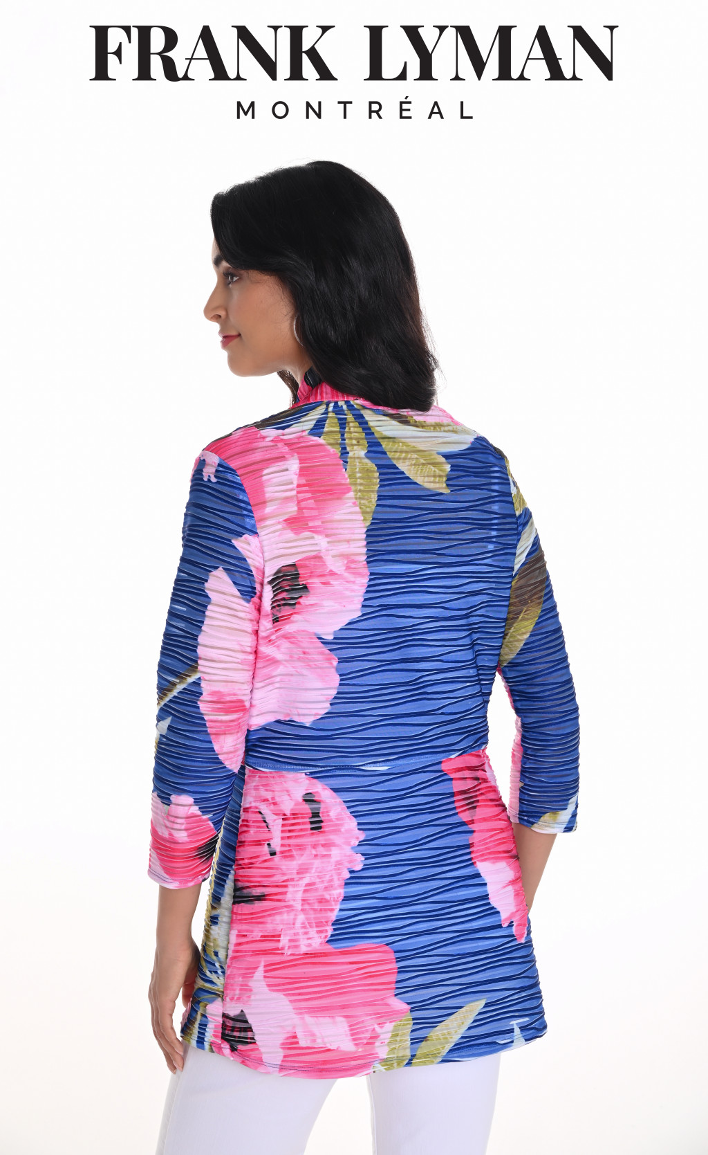Frank Lyman kék-pink mintás ráncolt hálós anyagú blézer