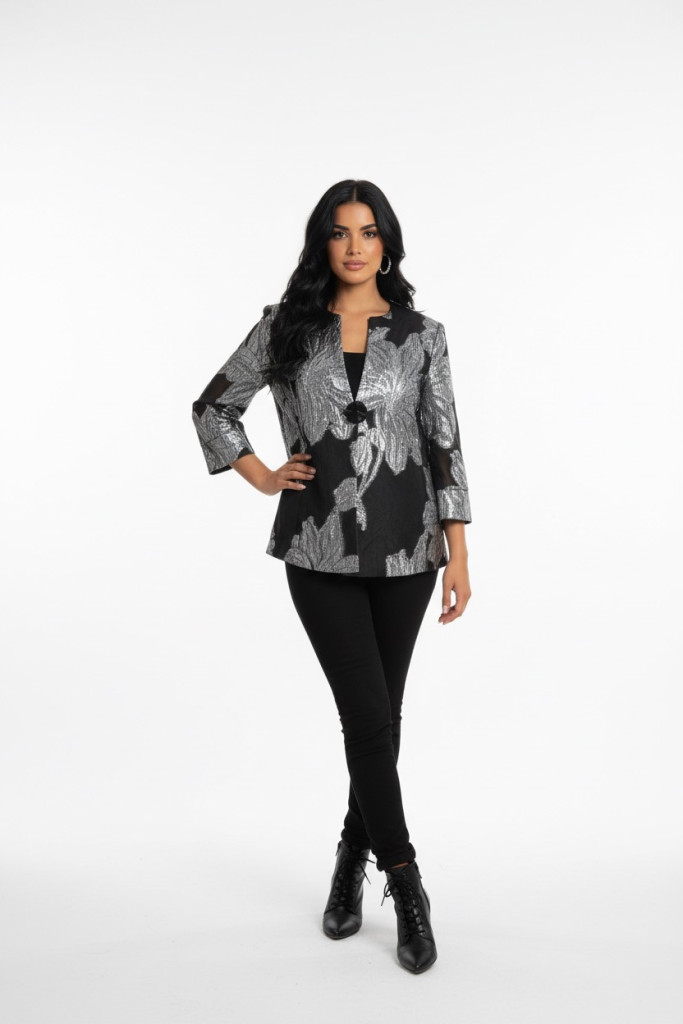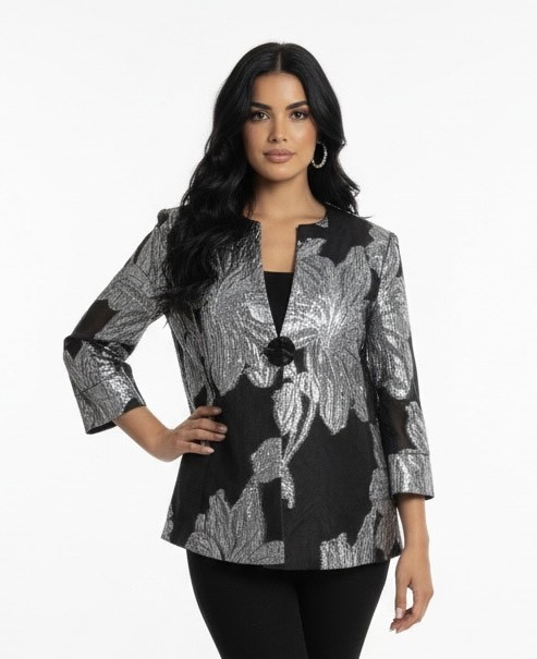 Frank Lyman fekete alapon ezüst virágmintás egy gombos blézer