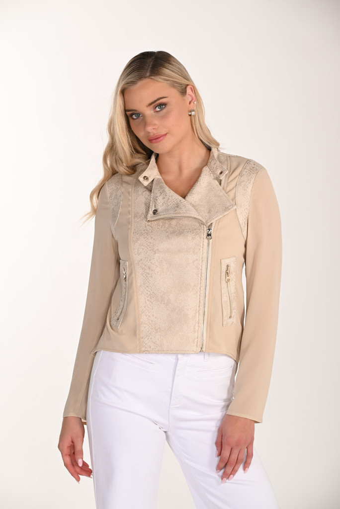 Frank Lyman beige alapon elején kigyóbőr mintás zippes hátán ingbetétes kabát-Blúz.