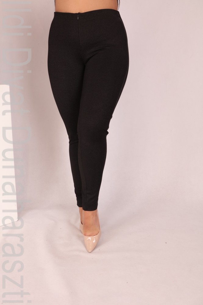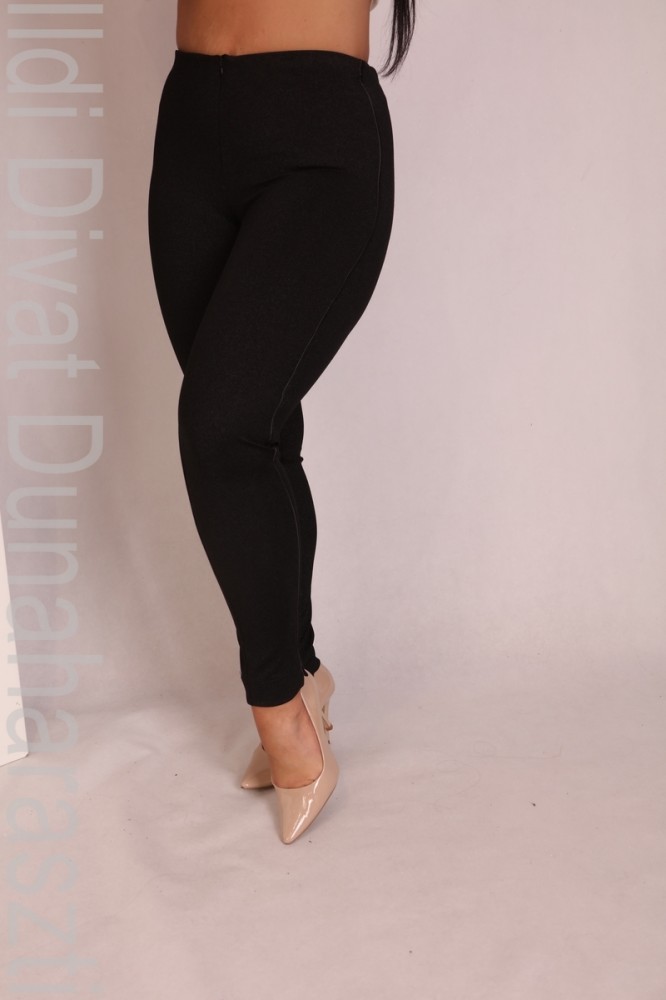 Livello Di Vita fekete színű, csillogós anyagú, elején rejtett cipzáros, kétoldalt műbőr betétes, elegáns nadrág.