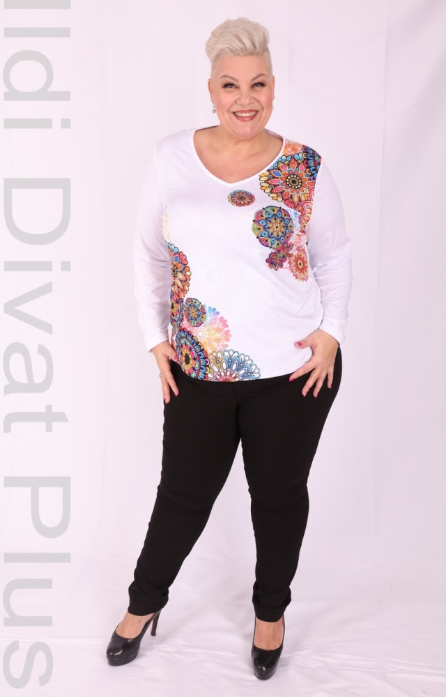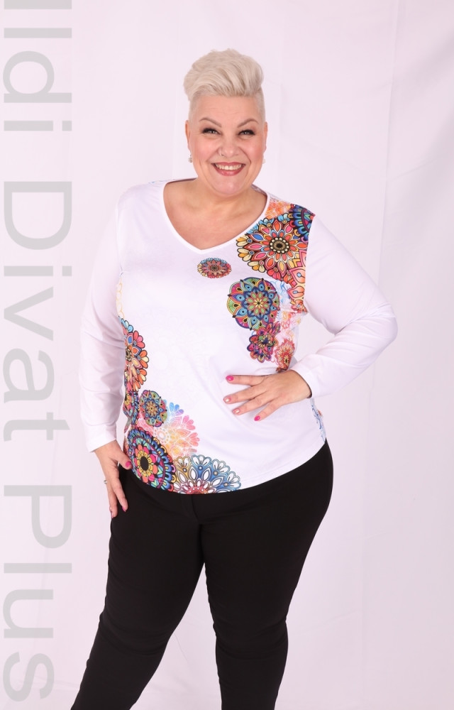 Fehér alapon mandala mintás V nyakú felső.