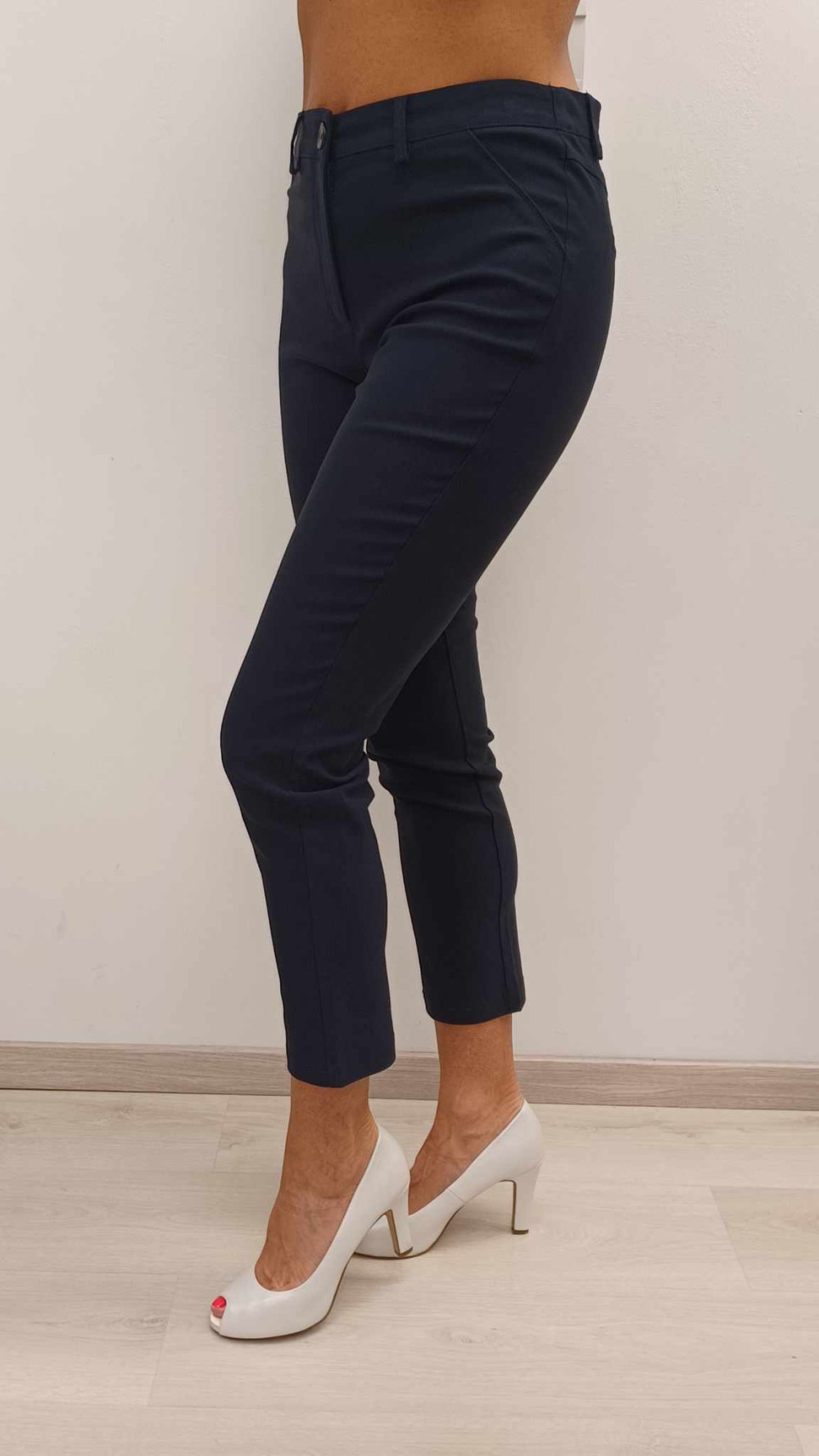 Sötétkék 3/4 bengalin gombos zippes nadrág