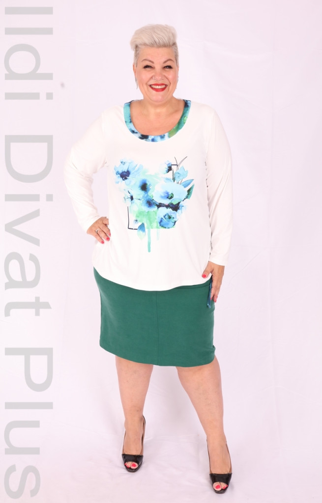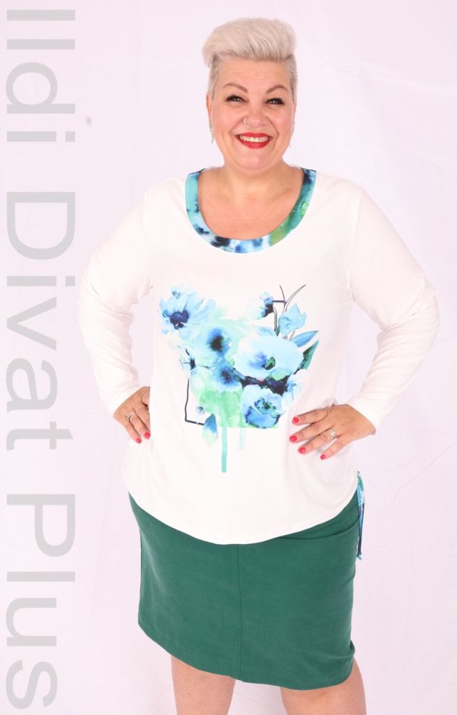 Livello Di Vita fehér alapon kék-zöld mintás hosszú ujjú felső.