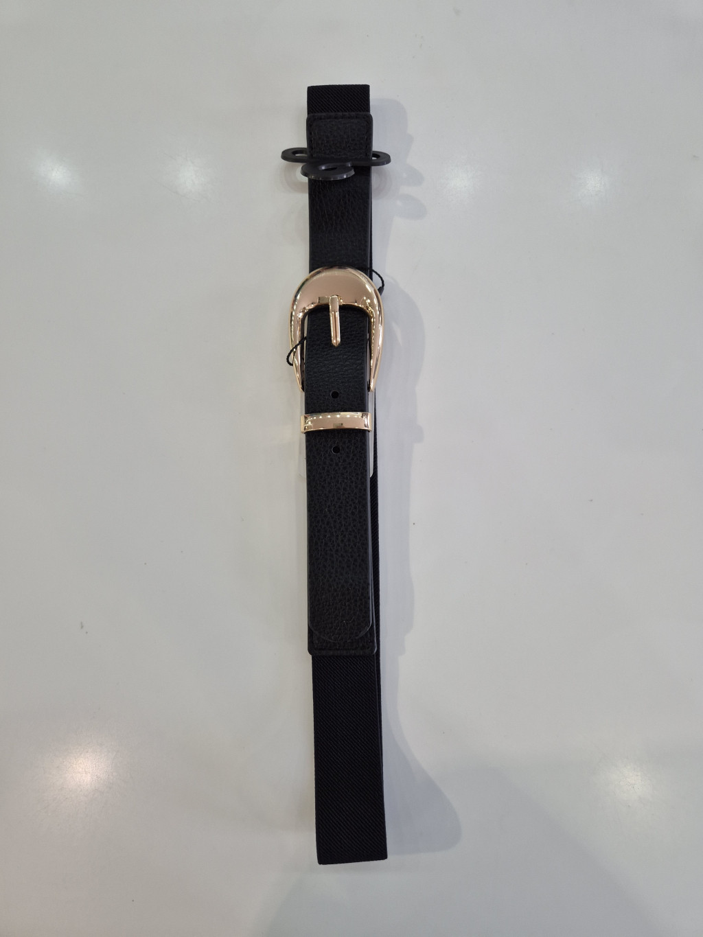 Fekete színű, elején arany csatos, gumis öv.