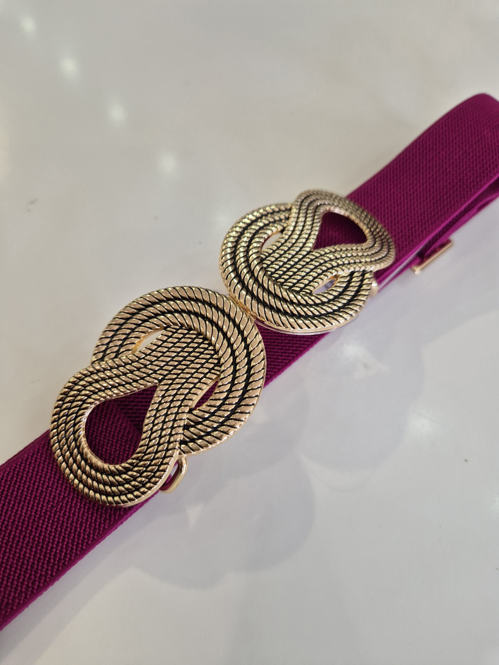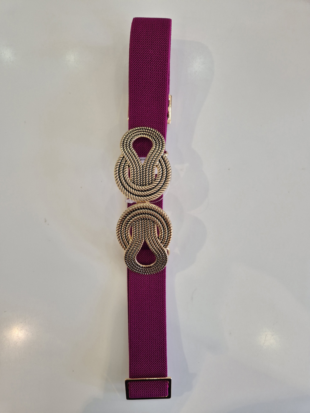 Lila színű, elején kapcsos, vékony, gumis öv.