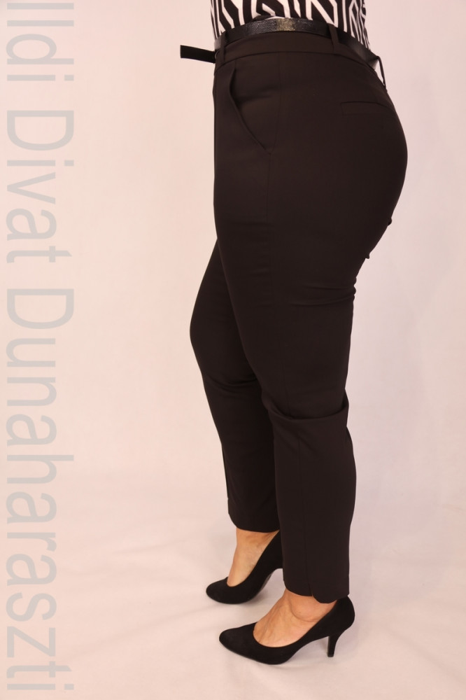 Rouge Avenue fekete színű, élére varrott, derekán cipzáros, elején zsebes, fenék részen díszzsebes, egyenes szárú, elegáns nadrág.