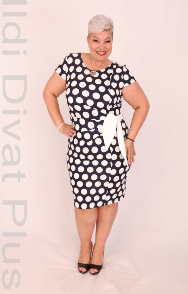 Zita Kék-Pöttyös Oldalt Kötős Ruha