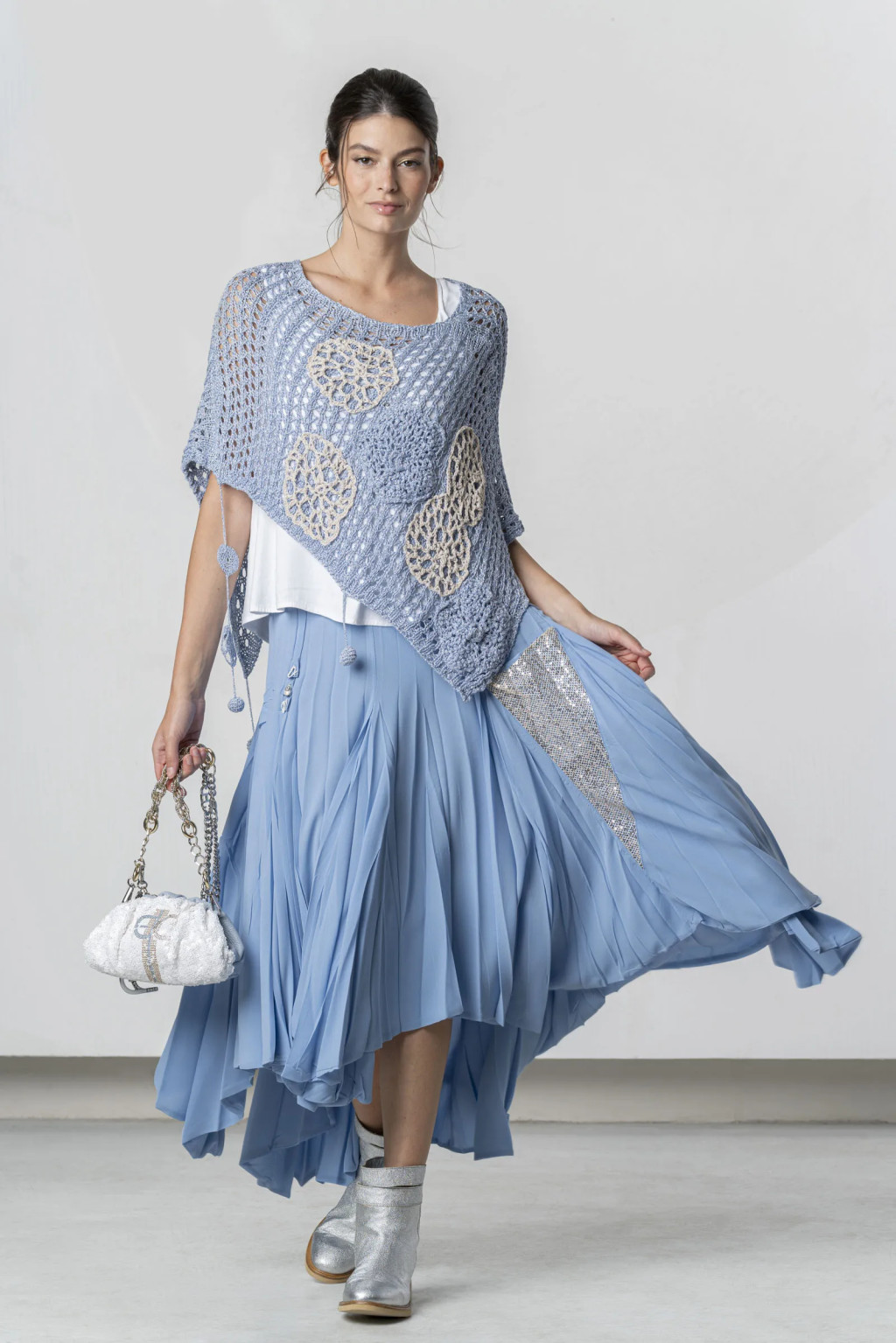 Elisa Cavaletti Világoskék Horgolt Poncsó