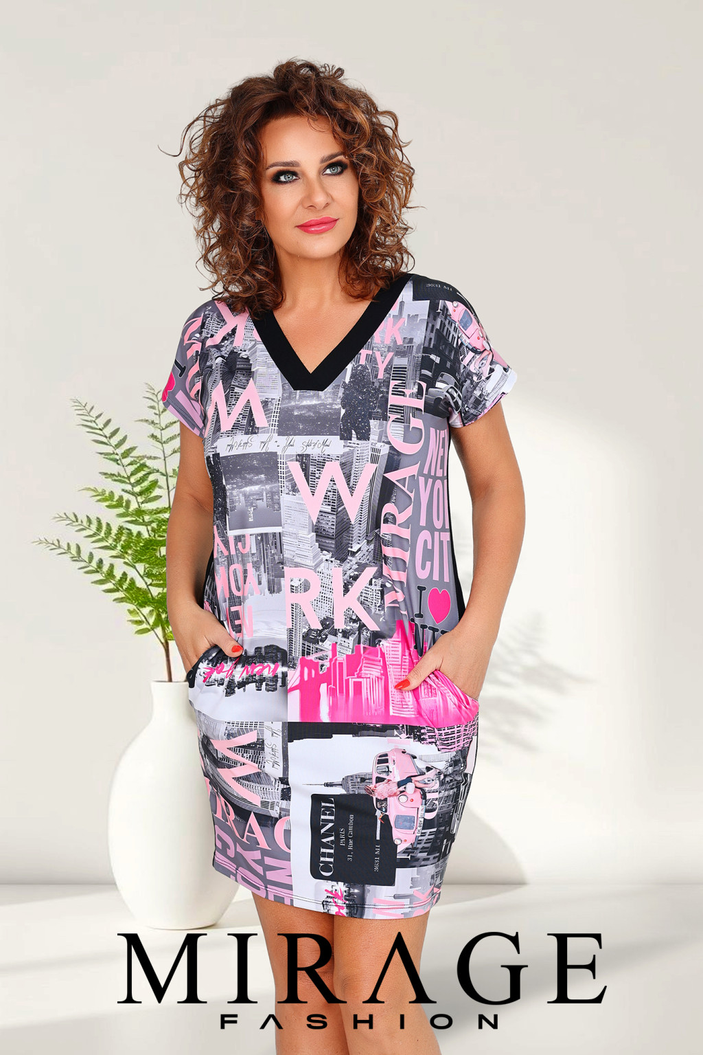 Mirage Fashion Fekete-Pink Mintás Sacramento Ruha