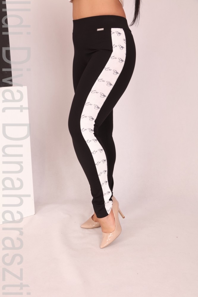 Mystic Day fekete színű, oldalt monogram betétes, derekán körgumis, szűk szárú leggings.