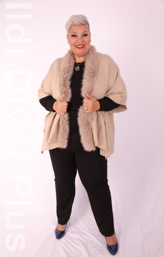 New Collection beige nyakán szőrős poncsó kardigán.