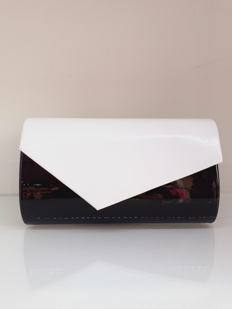 Alkalmi Háromszög Lakk Fekete-Fehér Táska