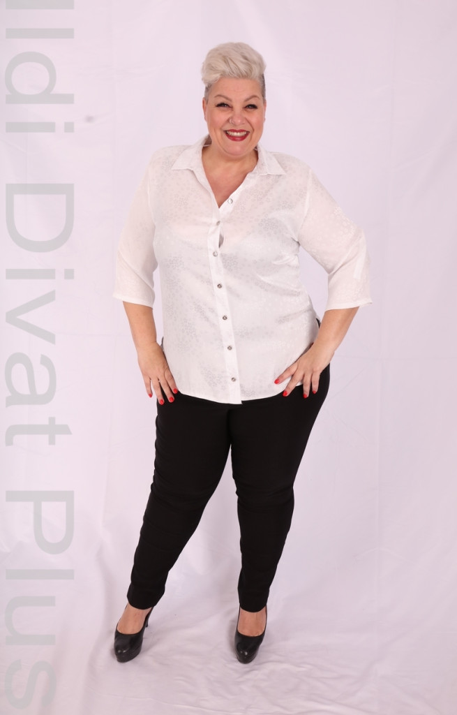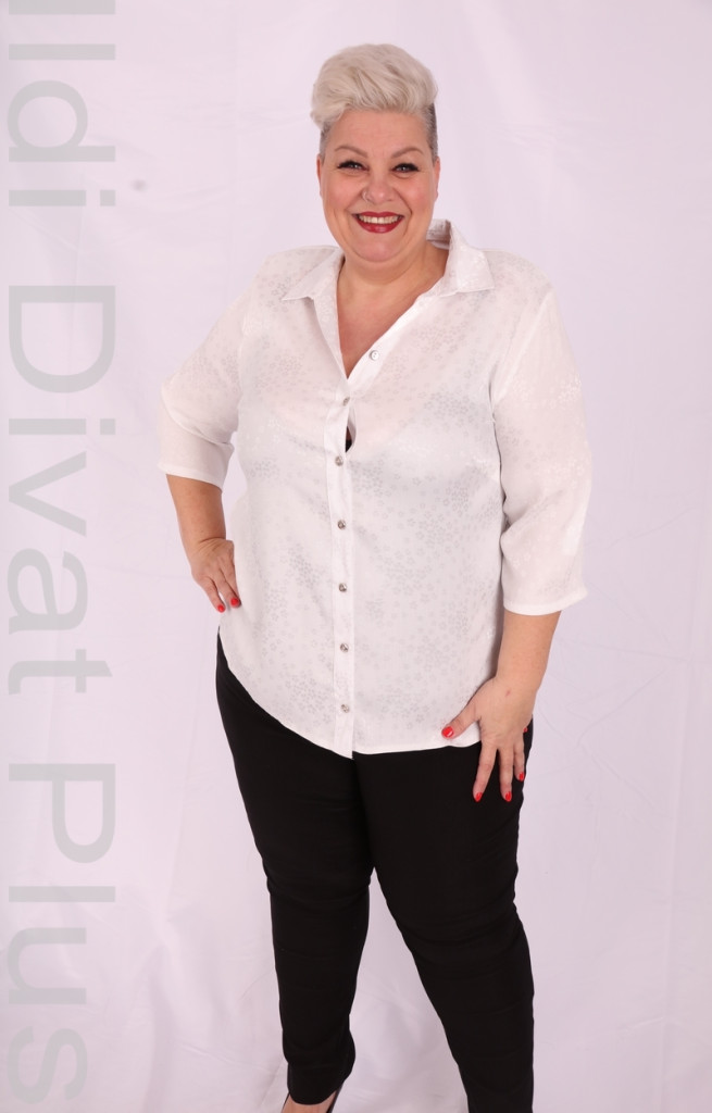 Maxi Lady fehér alapon anyagában virágmintás gombos galléros blúz.