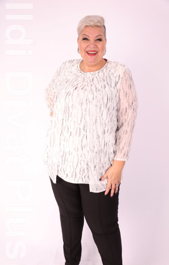 Maxi Lady fekrü alapon szürke mintás dupla betétes ingtunika.