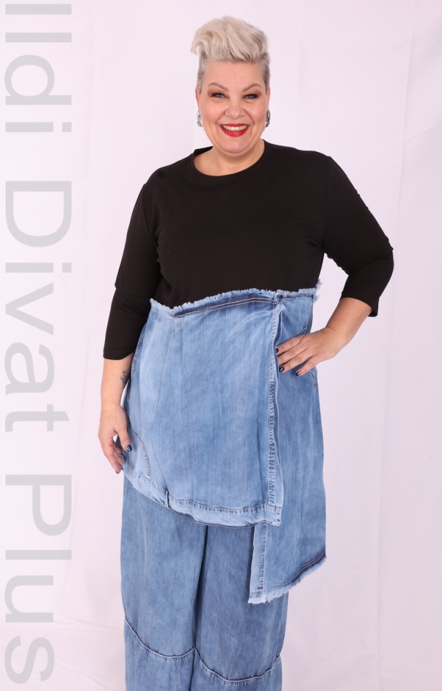 Fekete betétes farmer felső + gumis derekú bőszárú farmer nadrág