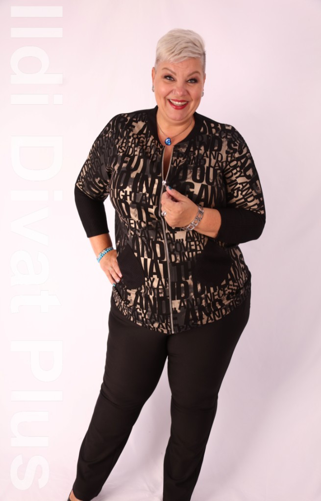 Sinyora Fekete-Bronz Mintás Zippes Rena Tunika