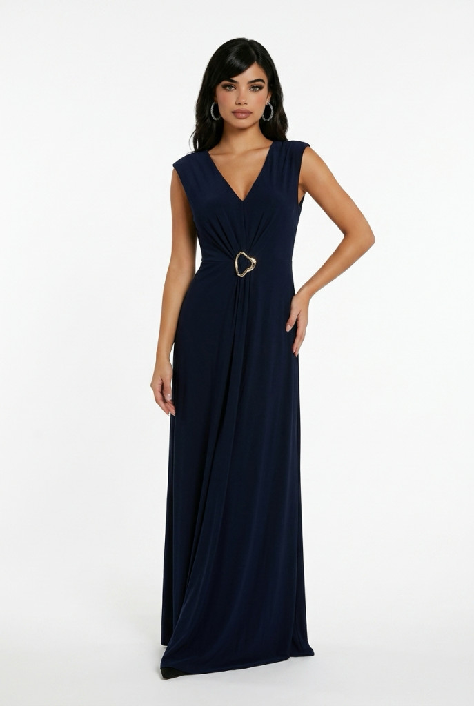 Frank Lyman sötétkék alapon ujjatlan derekán csattos alkalmi maxi ruha.