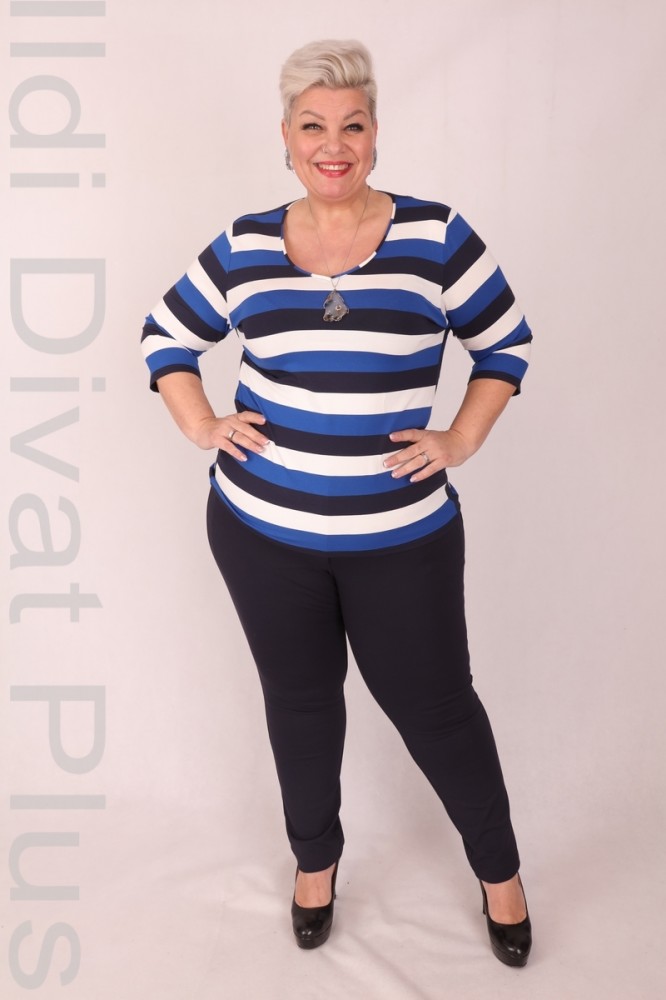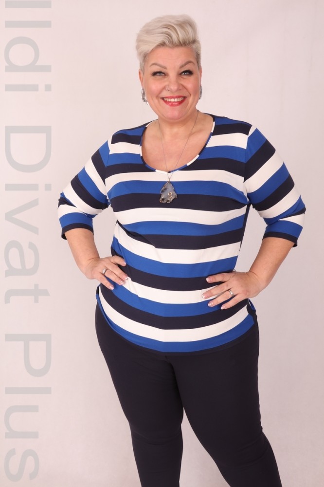 Livello Di Vita kék-fehér csíkos, V-kivágott, karcsúsított fazonú felső.