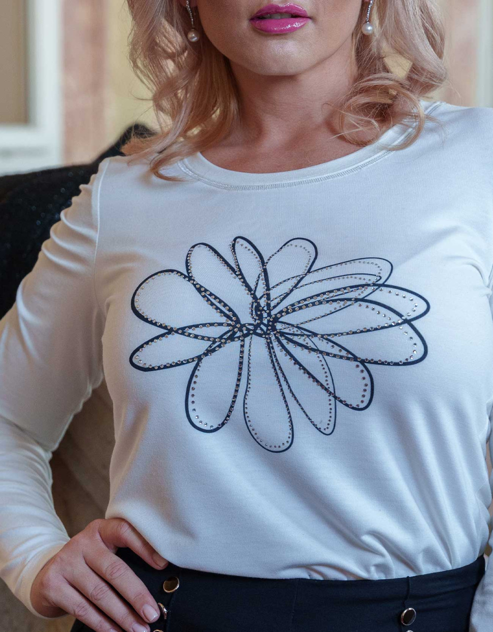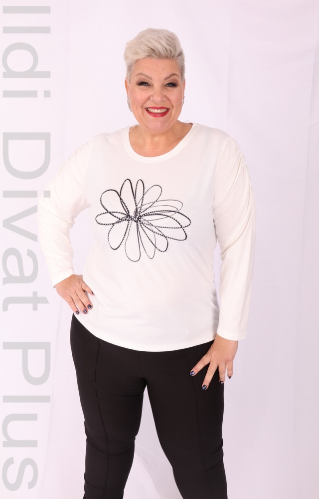 Ekrü alapon fekete nyomott virágmintás, köves felső.