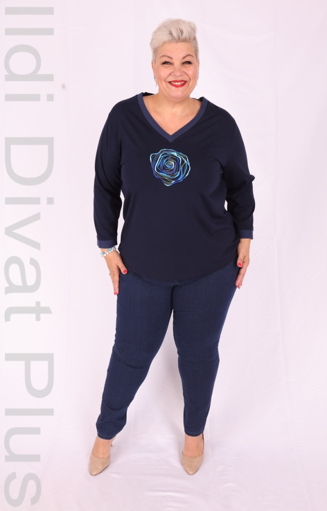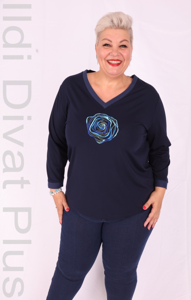 Livello Di Vita sötétkék elején rózsás V nyakú hosszú ujjú felső.