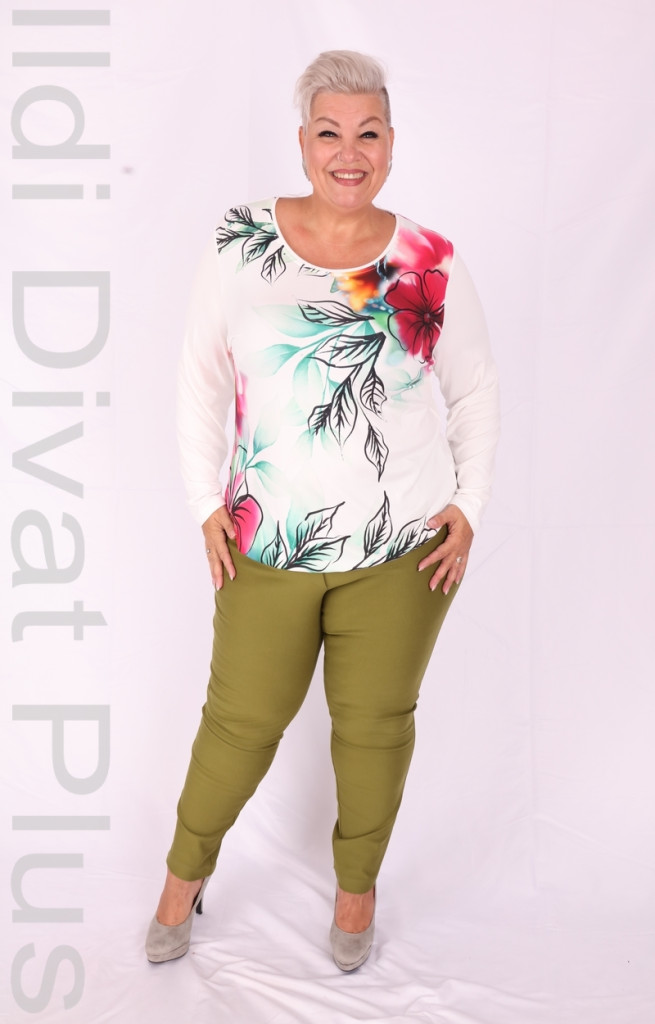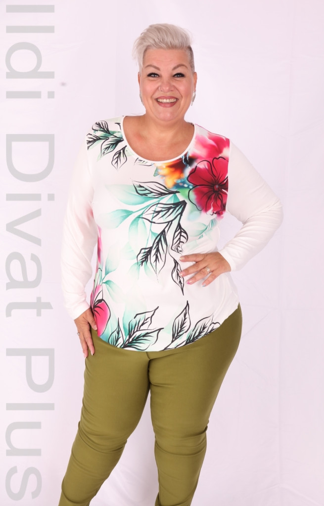 Livello Di Vita fehér alapon színes virágmintás hosszú ujjú felső.