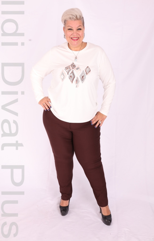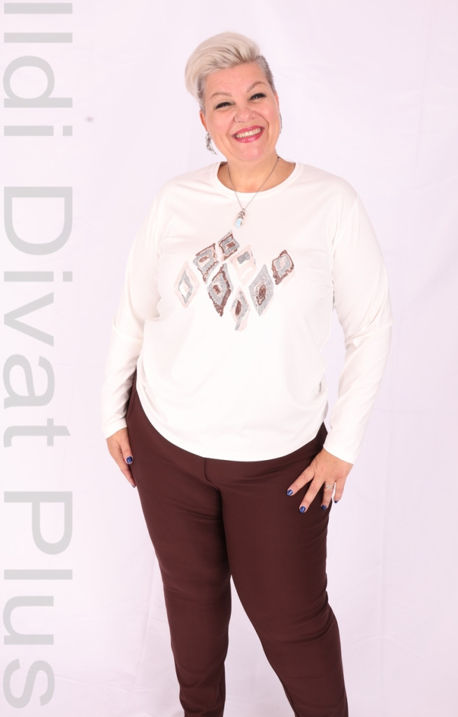 Livello Di Vita cream hímzett flitteres hosszú ujjú kerek nyakú felső.