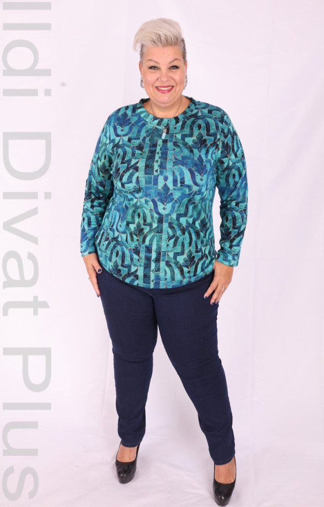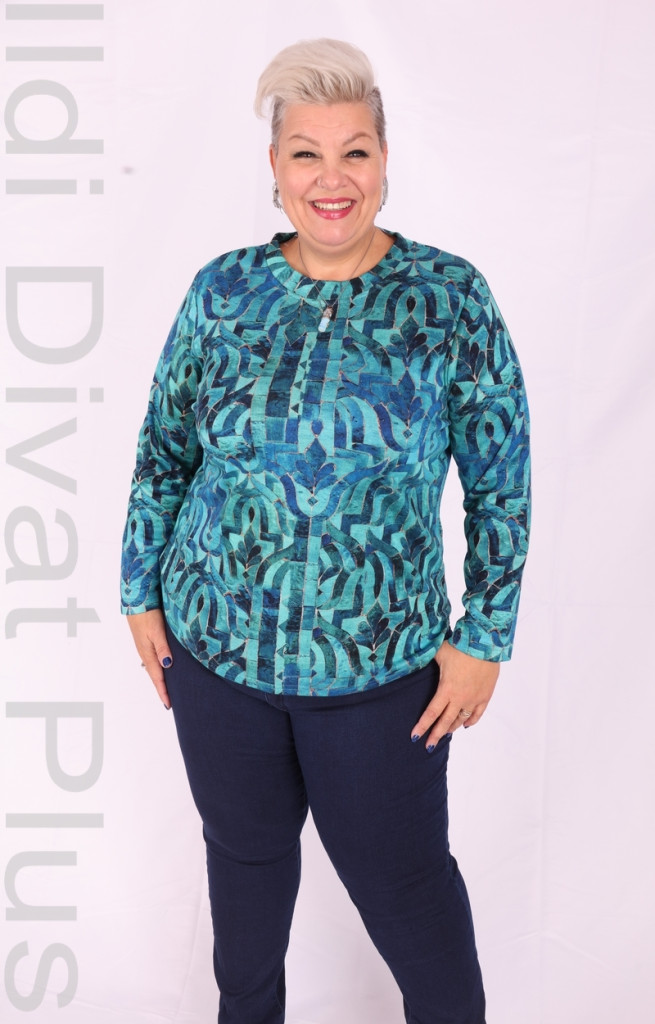 Livello Türkiz-Mintás Kerek Nyakú Felső