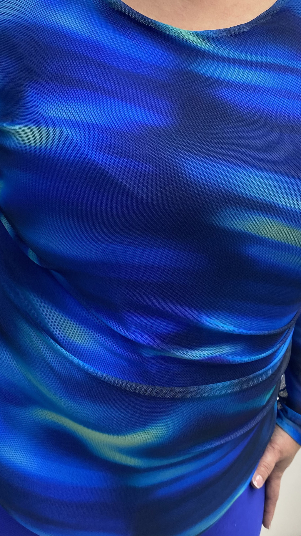 Livello Di Vita kék színű, necces anyagú, két oldalt húzott, karcsúsított fazonú felső.