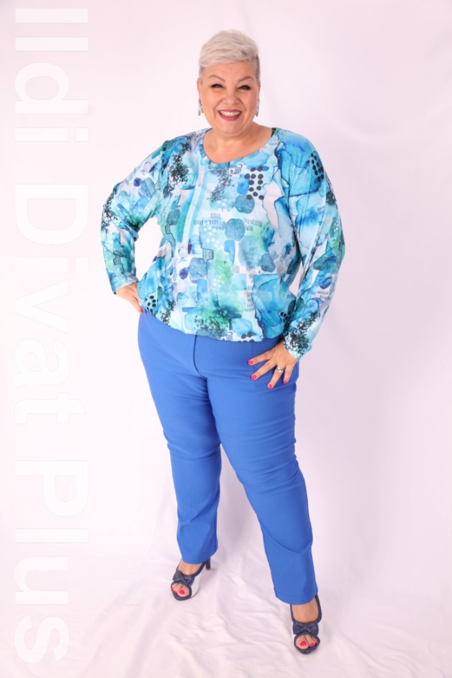 Livello Di Vita kék mintás kerek nyakú alján kötős hosszú ujjú felső.