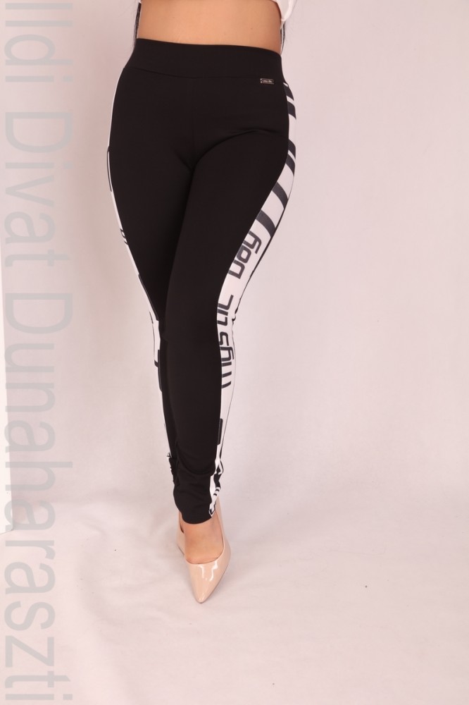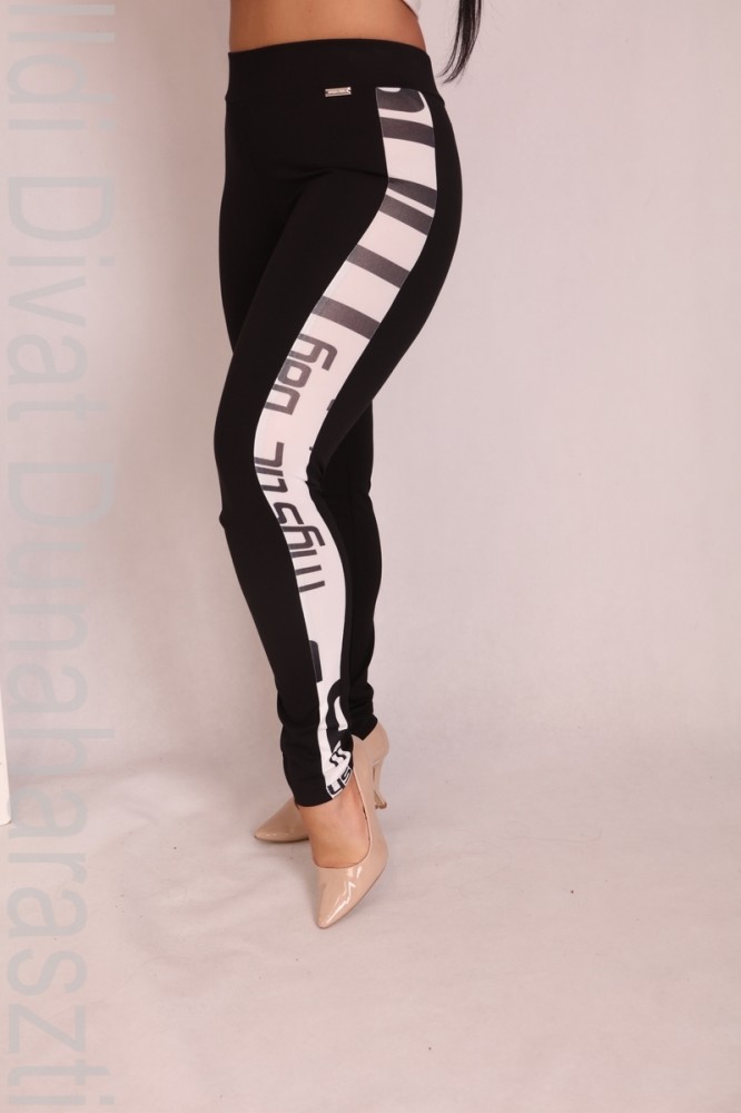 Mystic Day fekete színű, oldalt monogram betétes, derekán körgumis, szűk szárú leggings.