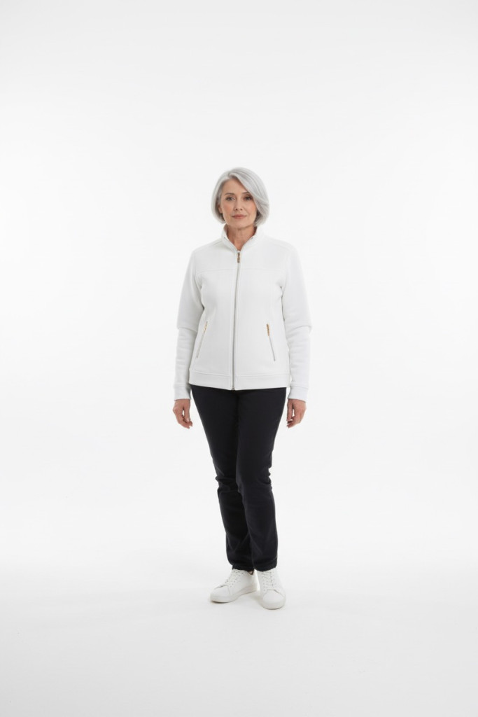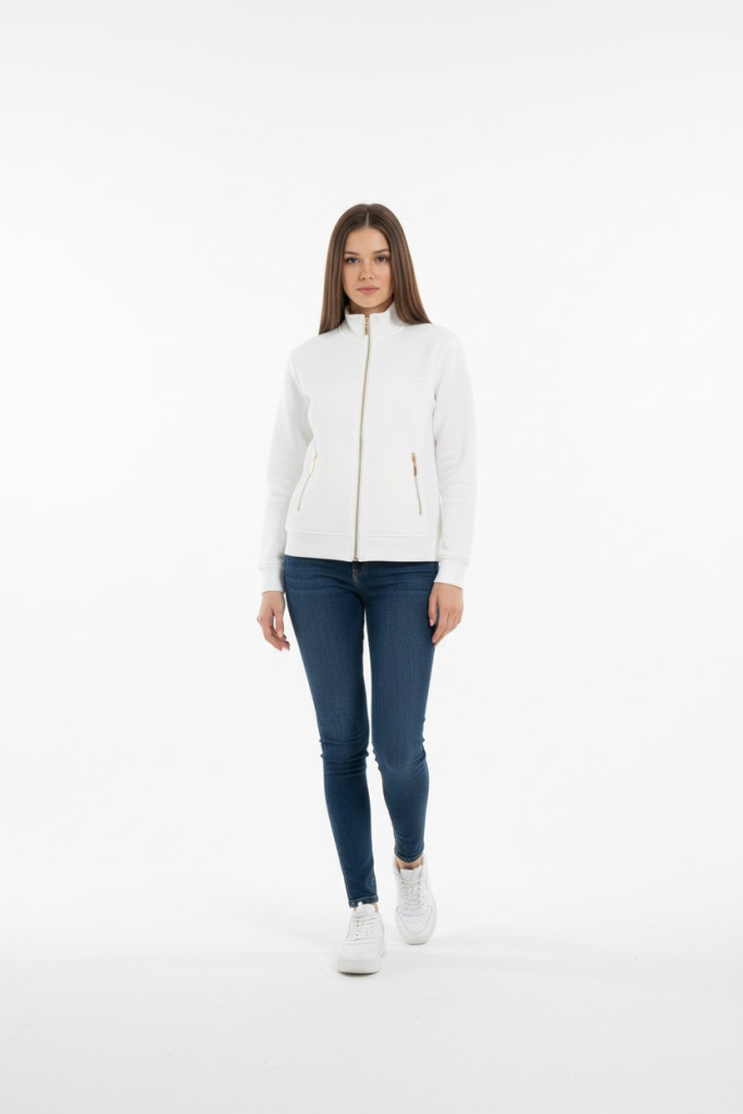 Micha fehér elején zippes galléros felső.