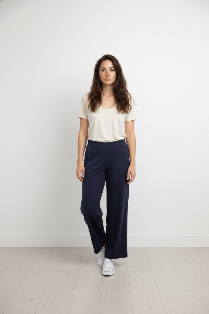 Micha sötétkék gumis derekú egyenes szárú spotrosan elegáns nadrág.
