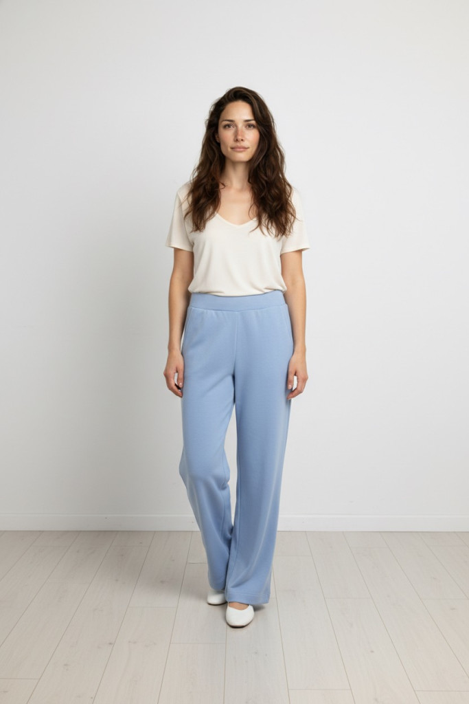 Micha babakék gumis derekú egyenes szárú spotrosan elegáns nadrág.