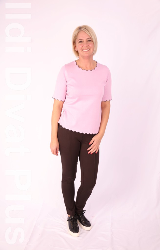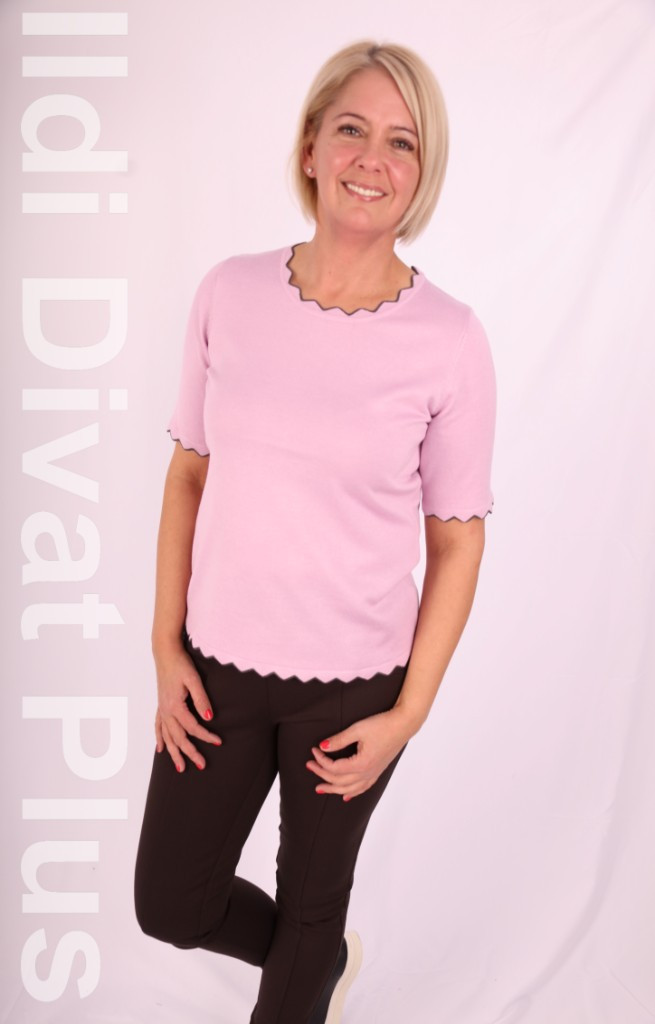 Micha lila alpon szürke cakkos szélű rövid ujjú felső.