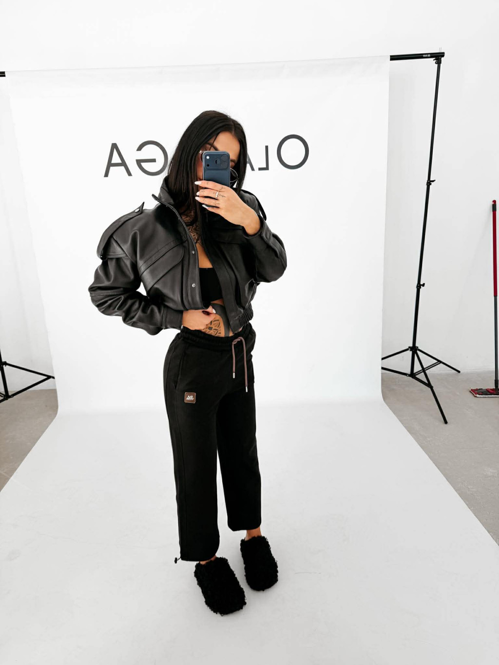 O'La Voga fekete alapon gumis derekú alján zsinorós jogging nadrág.
