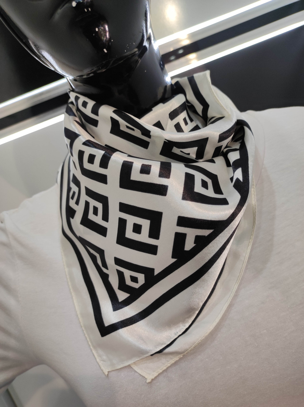 Ekrü-Fekete Mintás Hebe Szatén Kendő