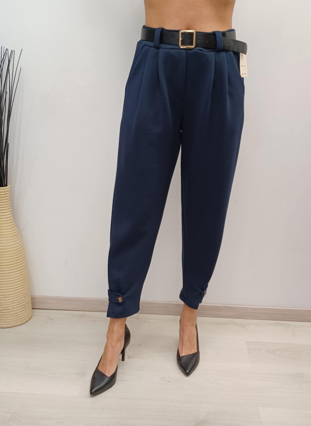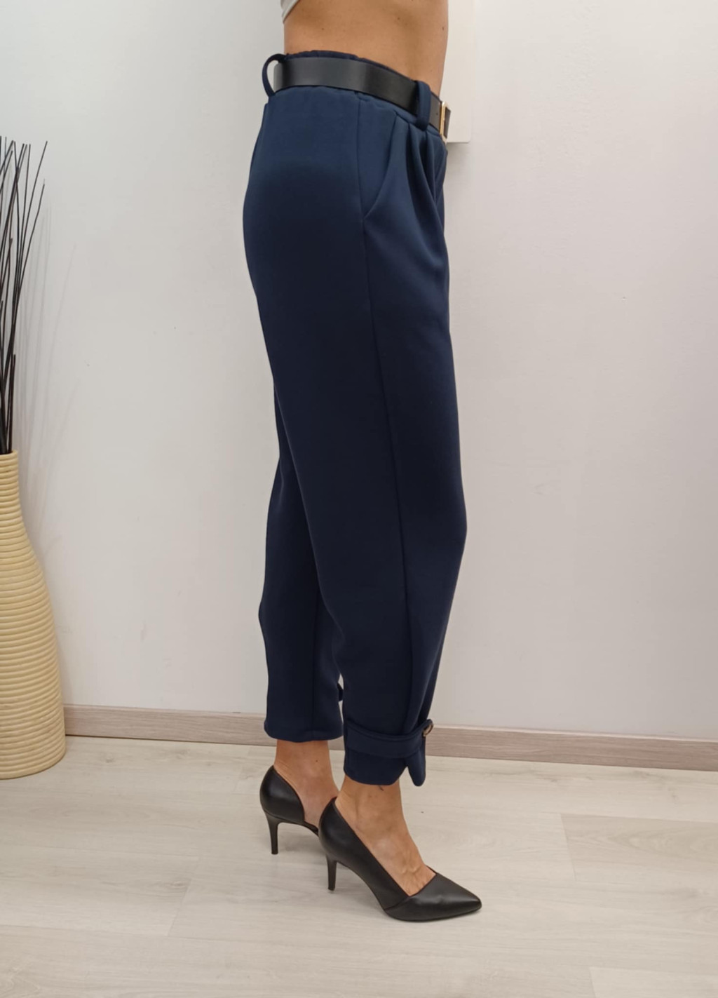 Autumn Collection sötétkék gumis derekú alján gombos nadrág.