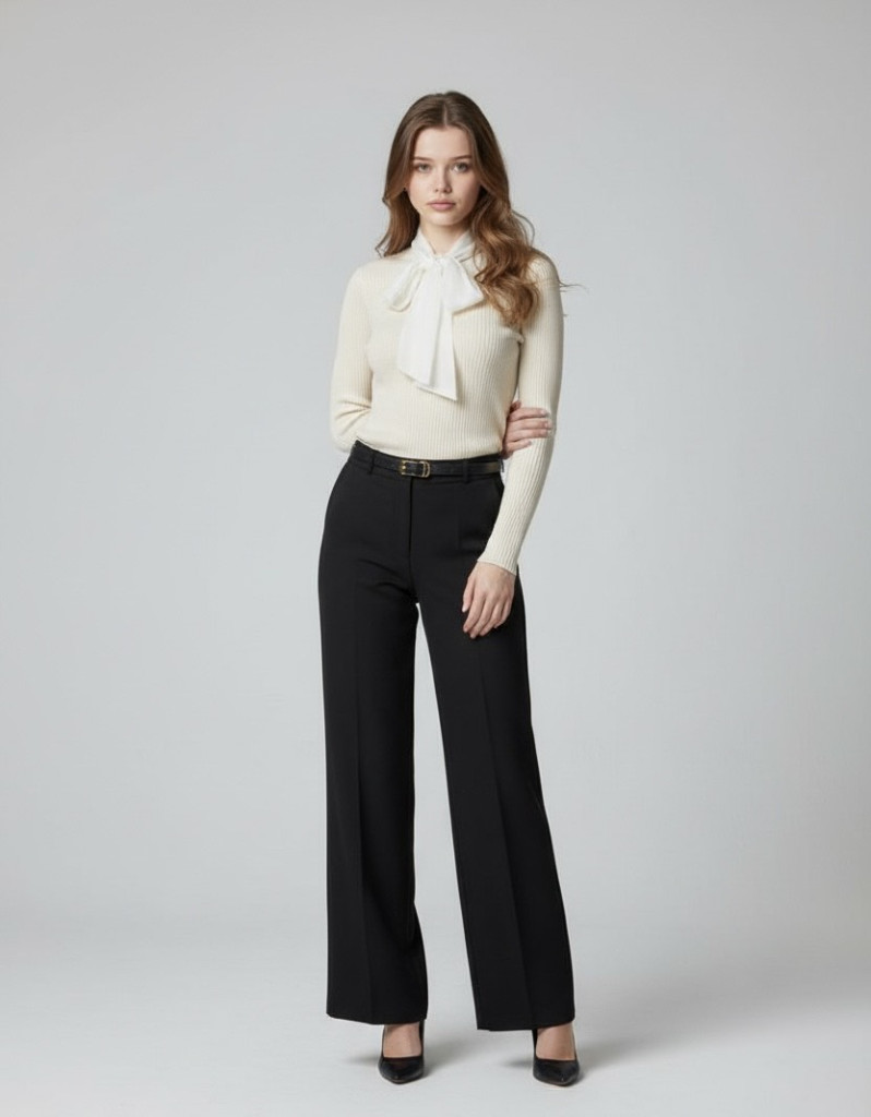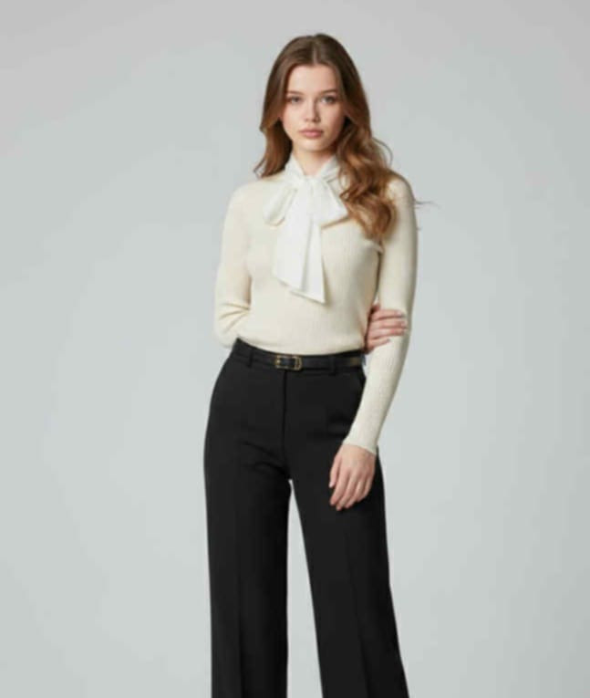 Autumn Collection ekrü kötött nyakán kötős felső.