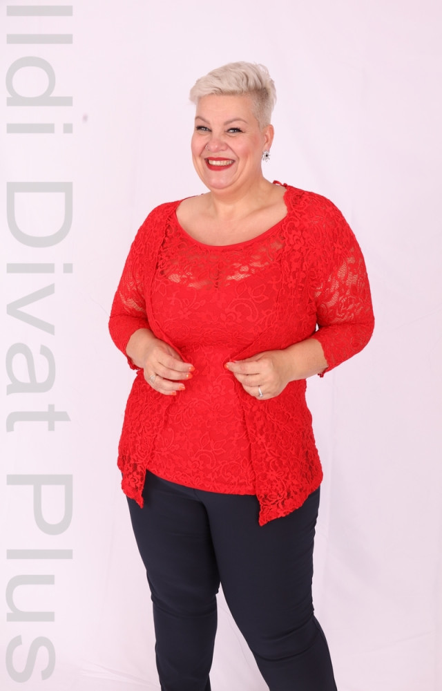 Zita Piros Csipke Felső+ Kardigán-2XL