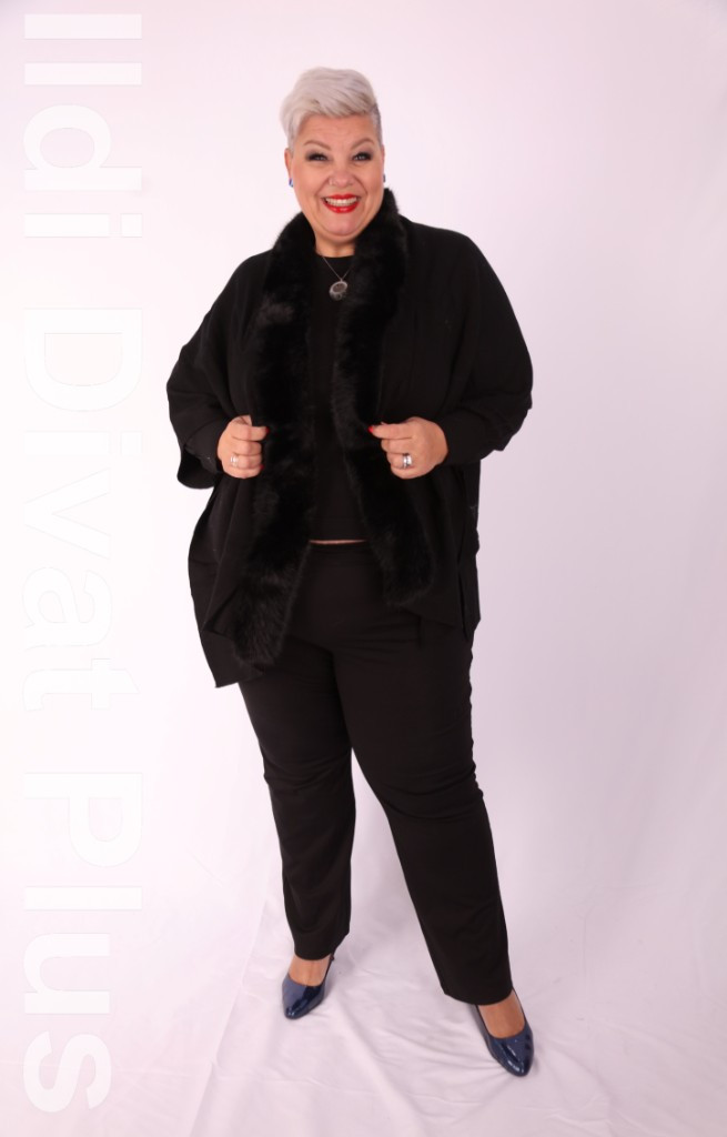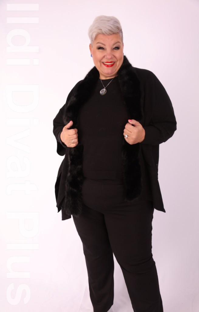 New Collection fekete nyakán szőrős poncsó kardigán.