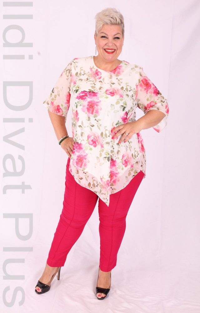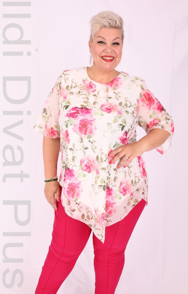 Ekrü alapon virágmintás A szimetrikus muszlin tunika.