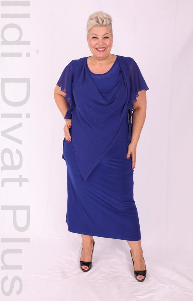 Hesba királykék színű, kerek nyakú, muszlin rátétes, karcsúsított fazonú midi ruha.
