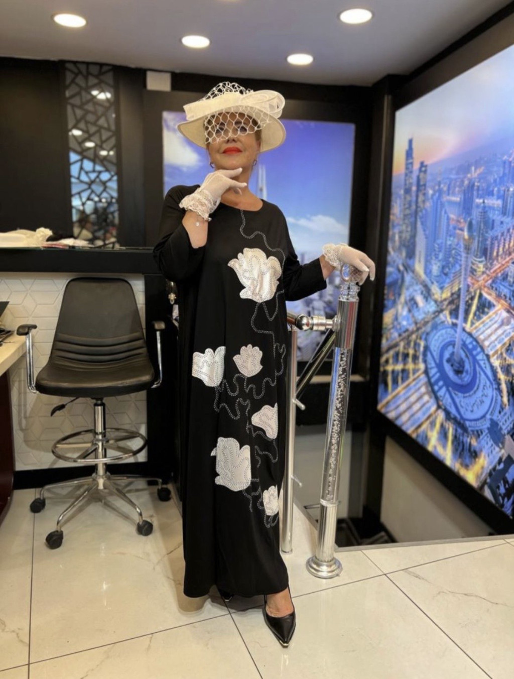 Cadrelli fekete alapon ezüst varrot mintás ruha.
